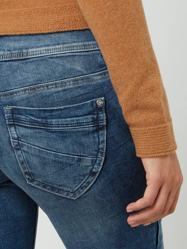 Die Jeans von TOM TAILOR ist aus einer leichten Baumwollmischung mit Stretch-Anteil gefertigt. Sie kommt im Slim Fit mit Eingrifftaschen, Gesäßtaschen und Used-Effekten. Warum wir diese Passform mögen? Slim Fit Jeans unterstreichen eine zierliche Silhouette.
